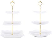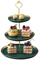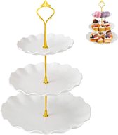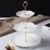 Présentoir à cupcakes en céramique, présentoir à gâteaux avec 3 couches d'animaux dorés incrustés, tables, assiettes de fruits pour table basse, décoration, cupcakes et assiettes, dessert, support (blanc)