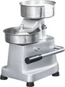 Grâce à la machine à hamburger, vous pouvez réaliser des tranches de hamburger parfaitement formées en quelques étapes. La presse à hamburgers est spécialement conçue pour un usage professionnel et peut être facilement intégrée dans n'importe quelle chaîne de production. Vous pouvez faire des hamburgers juteux à partir de bœuf haché, de poisson ou de légumes. Remplissez le récipient avec les ingrédients nécessaires, qui sont ensuite formés en un hamburger uniforme grâce à la forme exacte de la presse. Le boîtier est en aluminium moulé sous pression et les pièces en contact avec les aliments sont en acier inoxydable de haute qualité. La machine à hamburger est très robuste et très durable, même avec une utilisation intensive et exigeante. Le fabricant de hamburgers est actionné manuellement avec un mécanisme de levier simple. Le hamburger peut facilement être retiré de la machine en soulevant la poignée. Grâce aux feuilles de séparation incluses, les hamburgers ne collent pas ensemble. Toutes les pièces détachées de la machine à hamburger peuvent être nettoyées sans effort. En raison de ses petites dimensions, la machine à hamburgers est très peu encombrante et grâce aux pieds en caoutchouc antidérapants, elle peut être utilisée sur toutes les surfaces de travail.