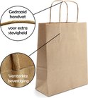 Ces sacs-cadeaux en papier kraft robustes sont fabriqués à partir de papier kraft de 100 grammes. Le fond et la poignée en papier torsadé sont parfaitement collés pour que ce sac cadeau puisse facilement supporter jusqu'à deux kilos de poids.