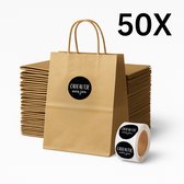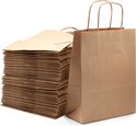 PrimeAmbition Sacs en papier Kraft avec poignée - 50 pièces - Marron - 18 x 8 x 24 cm - Sacs en papier - Sac cadeau - Sac cadeau - Sacs cadeaux - Sacs cadeaux - Sac cadeau