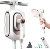 Je pense que c'est un bon produit! Je l'utilise sur le réglage le plus élevé. Alors oui, les 2 autres sont en fait superflus. Mais il va très bien ! Je l'aime bien mieux que le repassage ! Je vais vraiment suivre les tissus au lieu de la distance. Et attendez qu'il soit vraiment chaud avant de commencer. Je n'ai pas encore fait de matelas avec, mais est-ce possible ? Il me semble que l'eau sort parce que vous ne tenez pas le bateau à vapeur bien droit. Mais essayez. J'aime cela! Vous pouvez également le conduire avec des roues! Et pliez-le lorsque vous avez terminé (la barre est réglable en couches)