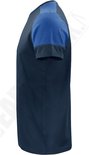 T-shirt bicolore moderne et ajusté avec col côtelé en quatre couches et élasthanne dans l'ourlet. Étiquette détachable au col et étiquette de taille tissée individuellement. Une poche était prévue à l'intérieur de la couture du côté gauche pour coudre dans une puce de lavage. Le tissu est filé à l'anneau et post-traité avec un lavage aux enzymes, ce qui rend le matériau pré-rétréci et doux au toucher. Certifié Oeko-Tex 100.