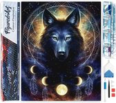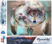 Production néerlandaise │ Peinture au diamant │ Indien avec des loups │ Taille 90 x 50 cm │ Paquet de peinture au diamant Adultes │ Couverture complète │ Carré │ Complet │ Peinture au diamant Flitzz