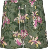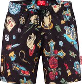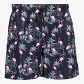 Short de bain noir pour homme. Equipé d'une ceinture élastique avec cordons de serrage et de deux poches latérales. Le short de bain a un slip intérieur et un imprimé flamant rose. Fabriqué en 100% polyester.