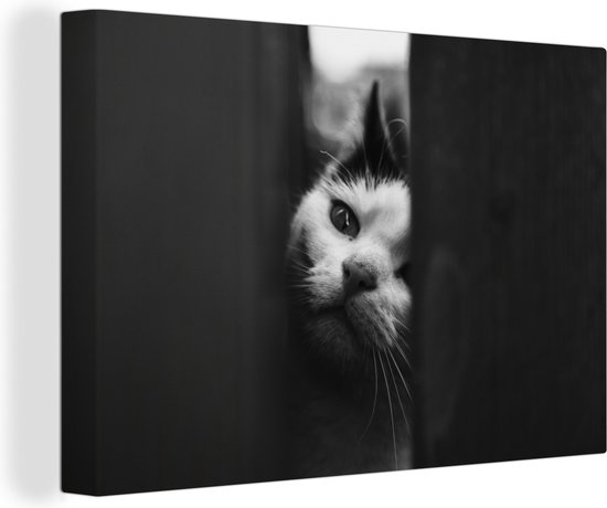 Profil animalier tricherie chat en toile noir et blanc 2cm 30x20 cm - petit - Tirage photo sur toile (Décoration murale salon / chambre)