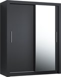 Promeubels - Armoire Miami - 120 cm - Zwart mat - avec miroir - Porte coulissante - Meuble de rangement