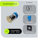ProRide Pressostat métallique Panneau à encastrer 12V ON-OFF - 16mm - avec câble de connexion - 12V/24V - Indication LED Jaune