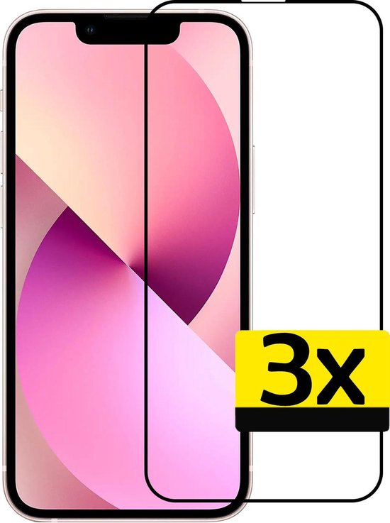Protecteur d'écran iPhone 13 Glas 3D Zwart - Protecteur d'écran iPhone 13 Full Cover - 3 Pièces