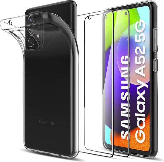 Protecteur d'écran trempé Samsung Galaxy A52 (4G & 5G) 2 x verre trempé + coque arrière en silicone TPU - transparent