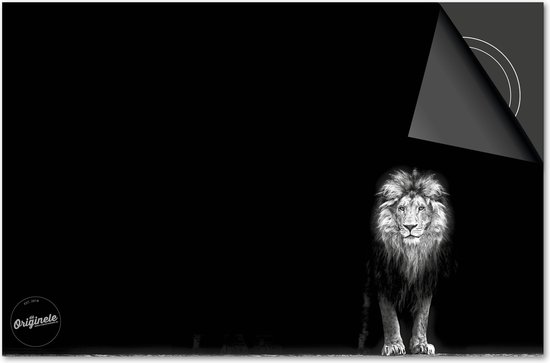 Protection induction 81x52 - plaque de recouvrement tapis induction - Dietrix Protection plaque de cuisson - DELUXE - Animaux - Lion noir et blanc dans le coin