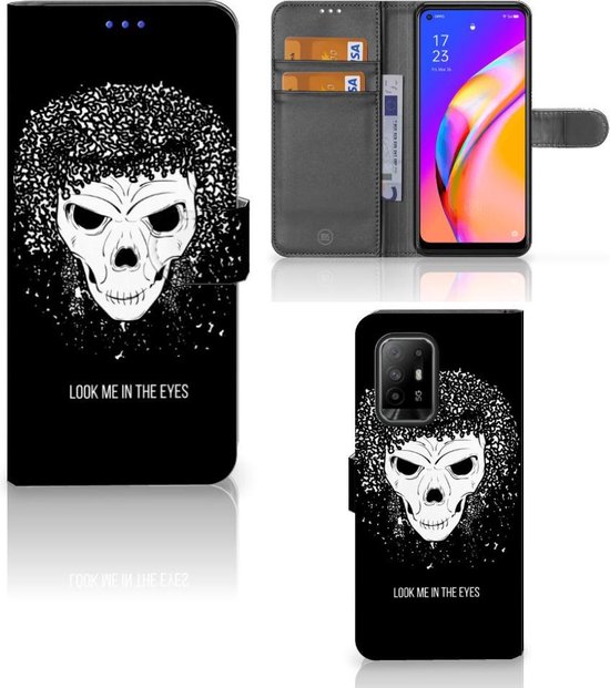 PU Cuir Premium Flip Case pour OPPO Reno5 Z | A94 5G Coque Téléphone Crâne Cheveux