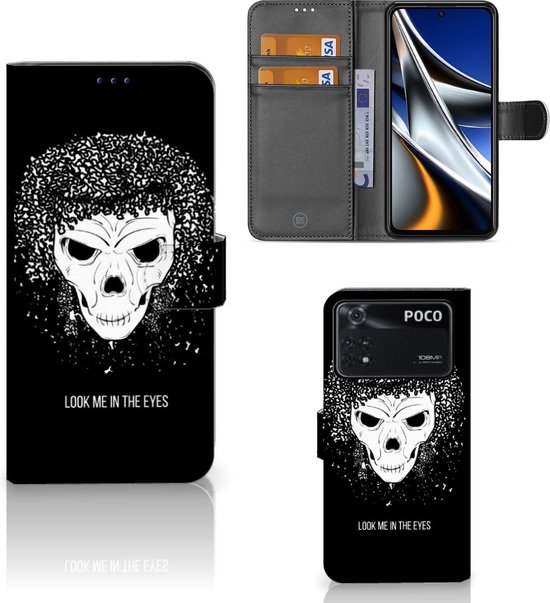 PU Cuir Premium Flip Case pour Xiaomi Poco X4 Pro 5G Coque Téléphone Crâne Cheveux Convient pour Xiaomi Poco X4 Pro 5G