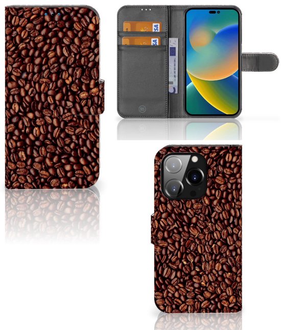 PU Premium Housse pour iPhone 14 Pro Portefeuille Grains De Café