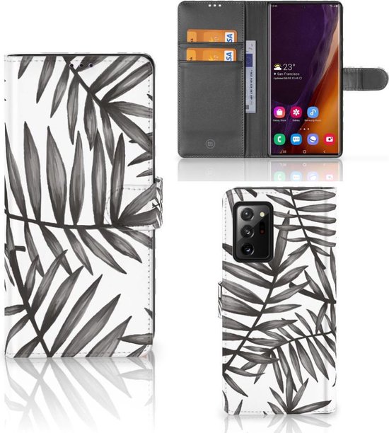 PU Premium Housse pour Samsung Galaxy Note20 Ultra Portefeuille Feuilles Grises Convient pour Samsung Galaxy Note20 Ultra