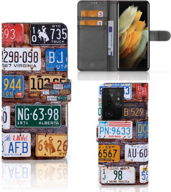 PU Premium Housse pour Samsung Galaxy S21 Ultra Portefeuille Plaques D'Immatriculation