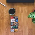 J'ai acheté une couverture de bibliothèque avec une plaque d'immatriculation américaine imprimée dessus. De belles couleurs et par hasard même avec quelques plaques d'immatriculation d'États américains que j'avais autrefois récupérées aux USA pendant les vacances. Absolument génial. La qualité de la bibliothèque semble bonne, elle semble un peu plastique, mais vous pouvez facilement essuyer toute saleté.