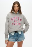 Le style et le confort sont au premier plan dans notre sweat-shirt ras du cou Varsity ample et orné. La chemise est dotée d'un texte graphique luxueux et embelli et d'une manche basse flatteuse. Vous ne voudrez plus jamais porter un autre sweat-shirt.