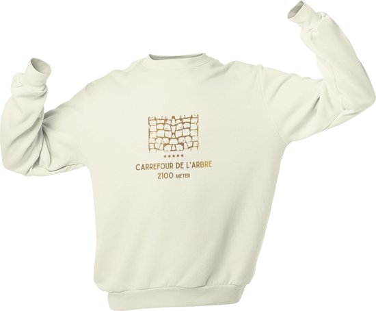 Un pull à l'imprimé iconique qui s'inspire du classique le plus lourd du printemps et qui est bien sûr Paris-Roubaix. L'imprimé à hauteur de poitrine sur le pull porte le naam de la célèbre bande pavée Carrefour de l'Arbre avec le nombre d'étoiles.