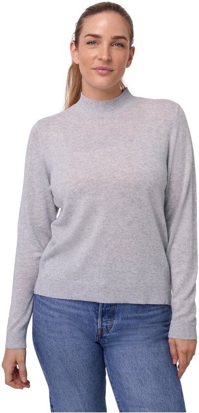 Pull DANISH ENDURANCE en laine mérinos et cachemire mélangés - Pull col roulé Premium pour femme - Douceur exceptionnelle - Gris clair chiné - Taille S