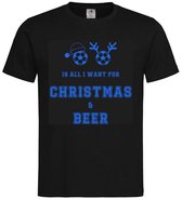T-shirt unisexe Adultes Bad Bad Noël Bières Man Texte drôle "Le Voetbal est tout ce que je veux pour Noël" | manche courte | Noir / bleu | taille M