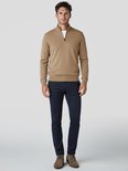 Ce pull demi-zippé pour homme est tricoté en laine mérinos légère et fine de haute qualité. Le pull a une coupe classique, des manches longues et est fini avec une structure côtelée élégante sur les poignets et le col montant pour un look intemporel. La laine mérinos est légèrement différente de la laine ordinaire. Grâce aux fibres douces et aux propriétés de régulation de la température, il est confortable à porter aussi bien par temps chaud que froid. Un vrai classique intemporel.