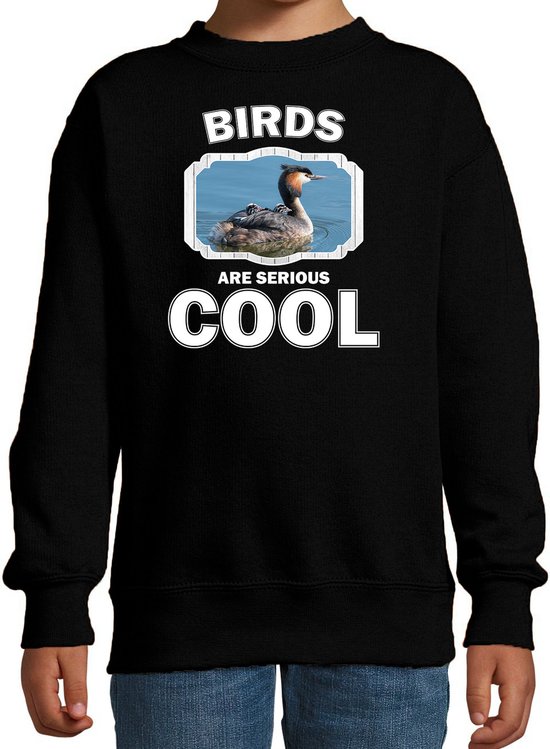 Pull Animaux grèbe oiseau noir pour enfant. Ce pull garçon / fille a une image d'oiseaux et le texte: les oiseaux sont vraiment cool. Un must pour un vrai amoureux des animaux / oiseaux ou quelqu'un qui épargne tout des oiseaux. Très agréable à offrir en cadeau à un véritable amateur d'oiseaux ou tout simplement à porter soi-même! Ce pull noir est composé de 80% coton et 20% polyester (260 grammes).
