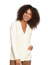 Pull à manches longues et col en V. Il y a des boutons en bas des manches. Le pull est arrondi en bas, ce qui lui confère une très belle coupe. Style Kogle 442. 70% viscose 30% nylon