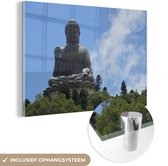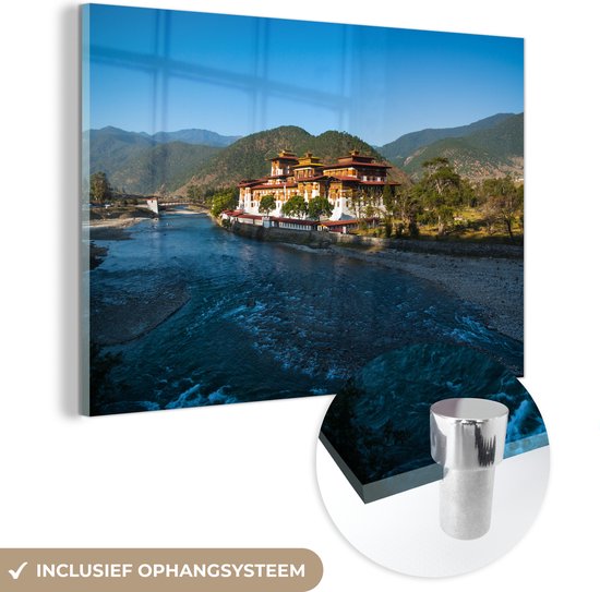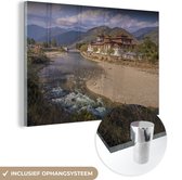 Punakha Dzong à côté d'une large rivière peu profonde au Bhoutan Plexiglas 90x60 cm - Tirage photo sur Glas (décoration murale en plexiglas)