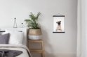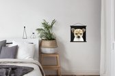 Puppy devant une affiche textielposter fond blanc lattes noir 40x60 cm