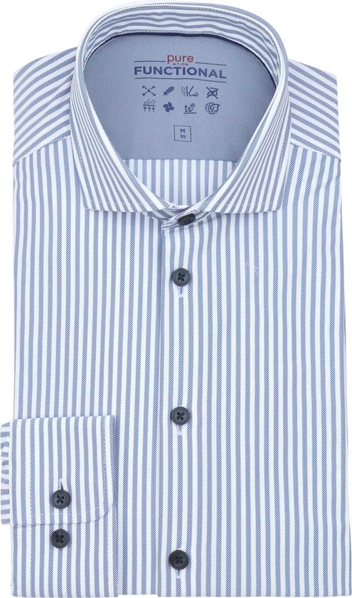 Pure The Functional Shirt Super Stretch Stripe Blauw - Taille 44 - Homme - Chemises Casual