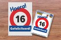 Panneau routier avec le numéro '16' et sous le texte 'Félicitations'.