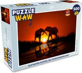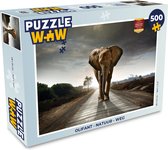 Puzzle 500 pièces - Éléphant - Route - Animaux - Coucher de soleil - Paysage - Puzzle