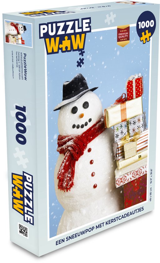 Puzzle Noël 1000 pièces - Un bonhomme de neige avec des cadeaux de Noël