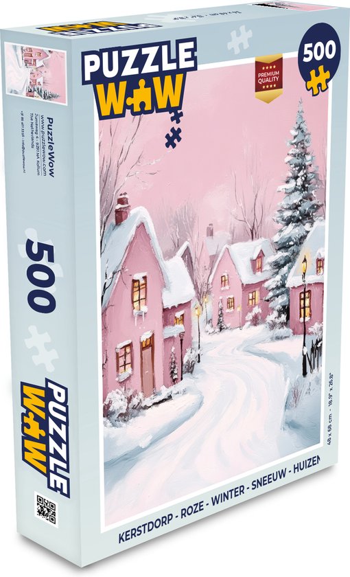 Puzzle Village de Noël - Rose - Hiver - Neige - Maisons - Puzzle - Puzzle 500 pièces - Noël - Cadeau - Cadeau de Noël pour hommes, femmes et enfants - Puzzle de Noël