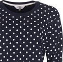 Pyjama Tenderness Terry Femme en 80% coton peigné et 20% polyester . Le haut du pyjama a le tissu éponge à l'intérieur. Le haut avec un motif à pois imprimé a des manches longues avec des poignets, le haut a également une encolure ronde et une planche à l'ourlet. Le pantalon long union a le tissu éponge à l'extérieur. Le pantalon a un cordon de serrage à la taille et des revers aux chevilles. Tous les poignets en élasthanne pour plus de confort.