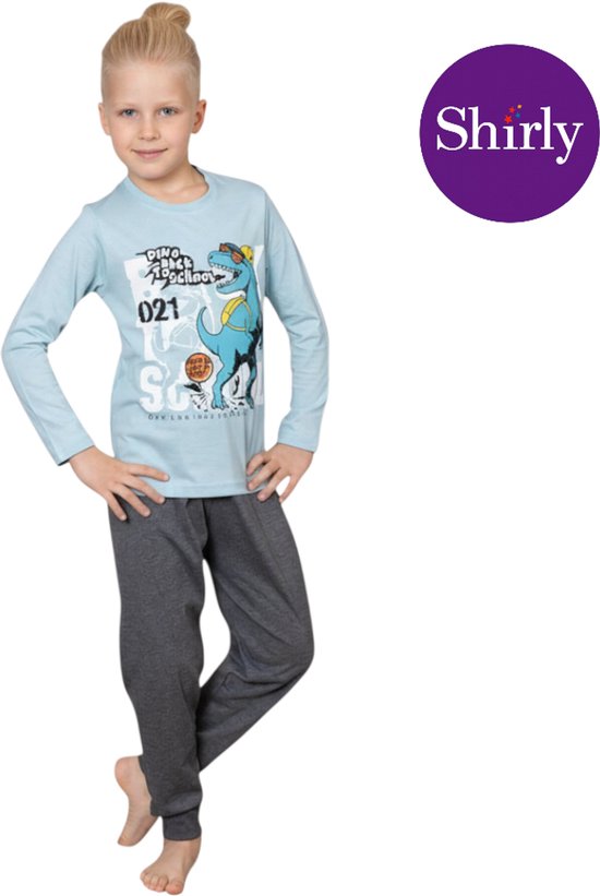 Pyjama Garçon - Ensemble Pyjama - Katoen - Blauw / Gris - Dino Back to École - 4028 - 5-6 ans