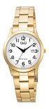 Q&Q C31A-002PY - Montre - Analogique - Dames - Femme - bracelet en acier - Ronde - Métal - Chiffres - Affichage de la date - Couleur Or - Wit - 3 ATM