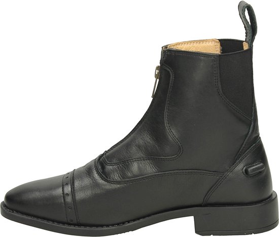 Le jodhpur Milan a un look élégant et est très confortable car il utilise du cuir de vache souple, avec un insert de cuir extra souple autour de la fermeture à glissière. -Matière extérieure: cuir de vache -Matière de la doublure: cuir de vache -Matière de la semelle: caoutchouc -Jodhpur très doux en cuir de vache souple-Sur le devant avec une fermeture à glissière-Insertion de cuir extra souple autour de la fermeture à glissière avec des formes rondes-Cuir ferme autour de la pointe et talon-La languette derrière la fermeture à glissière est finement remplie de matière pour plus de douceur-À l'arrière, il a un insert avec élastique pour un confort de port accru-Parce que l'élastique est à l'arrière, le jodhpur garde un aspect élégant-La boucle en cuir à l'arrière le rend facile à mettre -Toe embout orné de trous-Doublé en cuir de vachette naturel-Pied doublé de tissu respirant-Semelle intérieure en cuir, avec des perforations au niveau du cou-de-pied pour une meilleure ventilation-Fourni avec des supports de piste-Semelle en tpr en caoutchouc léger avec aspect cousu