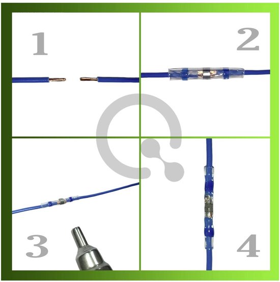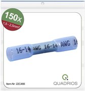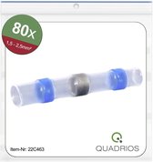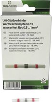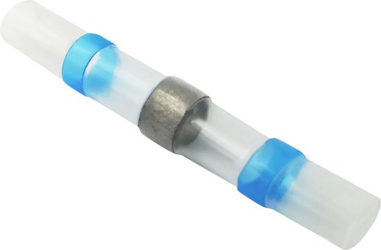 Quadrios 2011C400 Stootverbinder 1.5 mm² 2.5 mm² Volledig geïsoleerd Blauw 15 stuk(s)Deze soldeerverbinder is bijzonder geschikt voor knutselaars, ambachtslieden, buitendienst, servicewerkplaatsen, elektronici en de laboratoriumbehoeften. U krijgt een 15-delige premium stootverbinderset in een toepassingsgebied voor kabeldiameters van 1,5 tot 2,5 mm2, transparant met blauwe ring-kleur. De warmsmeltende binnenlijm sluit bij een juiste overlapping waterdicht af - de lot-ring verbindt de beide geleiders tijdens het krimpen en smelten! Voordelig bij transparante uitvoering is dat u het omwikkelde object kunt herkennen. Optimaal voor het repareren van kabels en ladders, service, productie of hobby. De toepassing is zeer eenvoudig: Kabels strippen en aan beide zijden in de verbinders steken tot de geïsoleerde kabeluiteinden onder de lot-ring elkaar overlappen of vergroeven. Gelijkmatige verhitting in het smelttemperatuurbereik tot het soldeer gesmolten is - optimale manier met een heteluchtpistool met een heteluchtventilator of heteluchtföhn - klaar. De maximale stroom wordt begrensd door de kabeldoorsnede van de gebruikte kabel, het printmateriaal en de kwaliteit van de soldeerplaats. Technische gegevens: Krimptemperatuur slang/lijm (min.): 80 °C, smelttemperatuur lot: Ca. 160 °C, bedrijfstemperatuur: -55 °C tot +125 °C, spanningsbestendigheid (max.): 600 V, ringkleur: Blauw. Bij correct gebruik is de verbinding watervast. De teksten voor dit artikel zijn automatisch vertaald.Stootverbinder · Volledig geïsoleerd · Doorsnede bereik: 2.5 mm²15x 1,5 mmm - 2,5 mmm - kleur: Blauw, 1x kartonnen verpakking