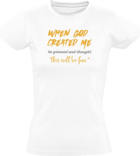 Quand Dieu m'a créé, il a souri et a pensé que ce serait amusant T-shirt femme - vie - gens - beau - laid - rire - plaisanter - humour - drôle