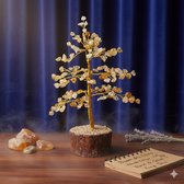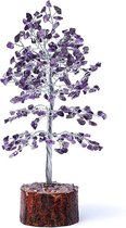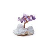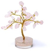 Arbre à pierres précieuses avec pétales de quartz rose, pour décorer une pièce avec le pouvoir curatif des pierres précieuses.