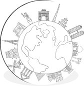 Quatre illustrations noir et blanc de Népal Wall cercle aluminium ⌀ 60 cm - tirage photo sur cercle mural / cercle vivant / cercle jardin (décoration murale)