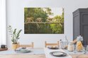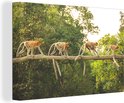 Quatre singes marchant sur toile branche 2cm 140x90 cm - Tirage photo sur toile (Décoration murale salon / chambre) / Animaux sauvages Peintures sur toile