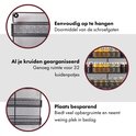 Le support en fer est solidement assemblé et est simpliste et moderne. De cette façon, toute l'attention est portée sur votre gamme d'herbes. Où que vous montiez le rack, il ne prend que 43 x 7,5 x 52,5 cm d'espace.