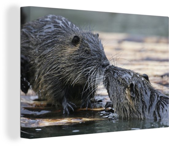 Ragondin amoureux dans l'eau 60x40 cm - Tirage photo sur toile peinture (Décoration murale salon / chambre) / animaux sauvages Peintures sur toile