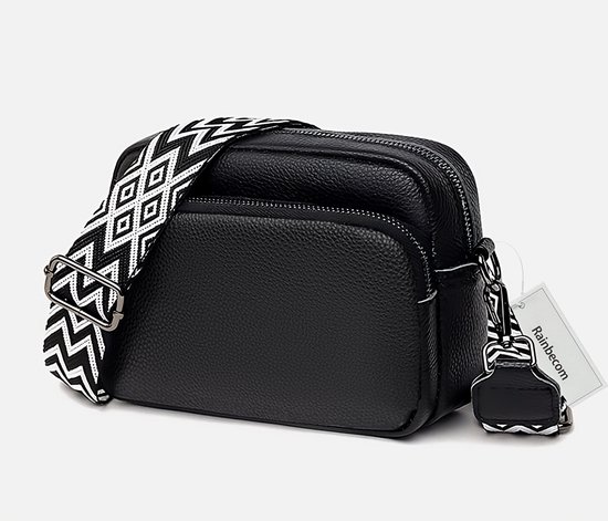 Rainbecom - Sac bandoulière femme Zwart - Sac bandoulière en similicuir - Bandoulière large réglable - Compartiments multiples - Sac bandoulière léger et élégant - 22 x 15 x 8 cm - Sac femme tendance