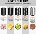 Râpe électrique Mercadome® - Râpe - Cutter - Nettoyage facile - Conception sûre - Incl. Cinq Couteaux en acier inoxydable - 250W - 285x135x305mm