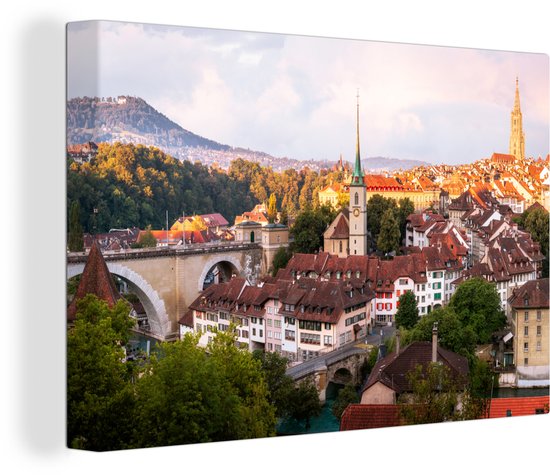 Rayons de soleil sur la ville de Berne 90x60 cm - Tirage photo sur toile (Décoration murale salon / chambre) / Villes européennes Peintures sur toile