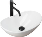 EMKE Vasque à Poser Ovale - Céramique - Wit Brillant - 41,5x33,5x13 cm - Lavabo de Salle de Bain