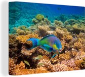 Récif de corail avec deux poissons-anges 180x120 cm - Tirage photo sur toile (Décoration murale salon / chambre) XXL / Groot format!